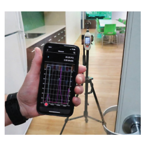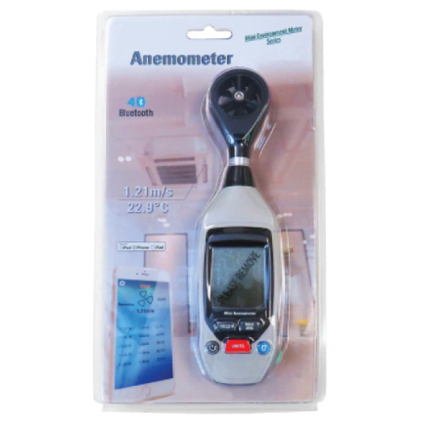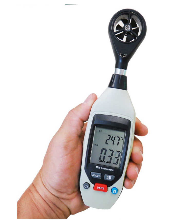 Sper Scientific’s Bluetooth® Anemometer Meter is small, light, and simple to use. Simultaneously displays air temperature in °C or °F, and air velocity in 5 units of measure, on the meter’s large 1-½” high backlit display. Features minimum and maximum hold (peak), data hold and moving average functions.