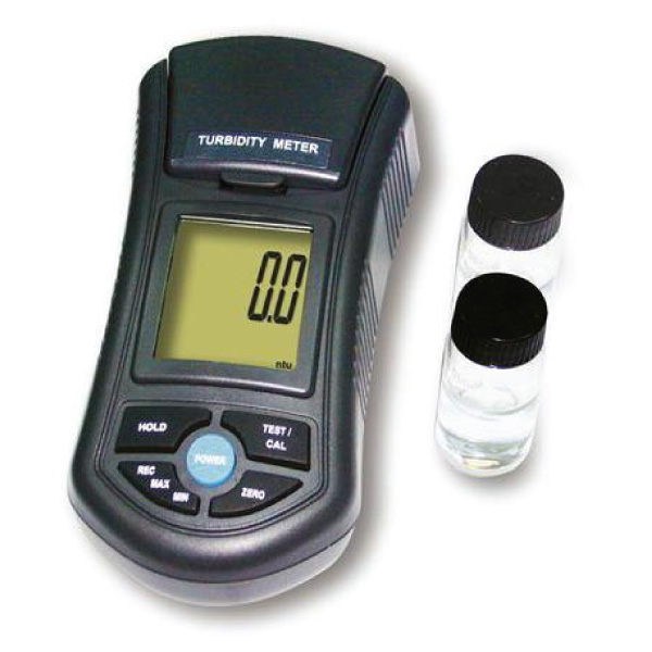 Turbidity (undissolved solids) is an important measure of water quality in environmental testing, wastewater, petrochemical, beverage industry, and electroplating. This compact, battery operated meter is easily portable for use in the field or lab. Uses the highly accurate nephelometric method to meet ISO 7027 standards. Features push-button automatic 2-point calibration, auto-ranging, and min-max recall, Light Source: LED, 850 nm. Comes ready to use in a hard, foam lined, carrying case with 0 NTU and 100 NTU calibration solutions, 2 sample cell bottles, distilled water, cleaning cloth, instruction manual, and 6 AAA batteries.
